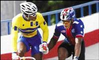Barbados' Barry Forde (left) and US's Guideon Massie ride together after the men's sprint semi-final at the XIV Pan American Games in Santo Domingo recently. - Reuters BRIDGETOWN, Barbados, CMC: