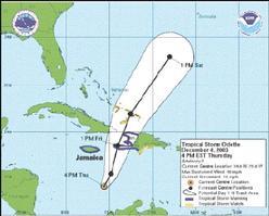 THE NATIONAL Meteorological Service yesterday issued a tropical storm warning for Jamaica following the formation of Tropical Storm Odette in the Caribbean four days after the hurricane season ended.
