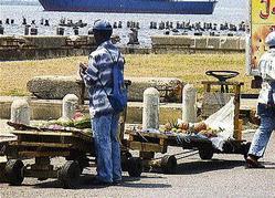 A fruit vendor prepares goods for sale at the waterfront. - photos by Robert Lalah The Kingston waterfront is a place where, no matter what time or day it is, you're bound to run into some of the most interesting and colourful people on the island. Take Lenny, the melon vendor, for instance, who'll go through great pains to tell you of his sexual dysfunctions by using the most intimate details you can imagine. Never mind the fact that he doesn't know you, you'll soon know more about him than you care to. But that sort of thing is for another time and place.