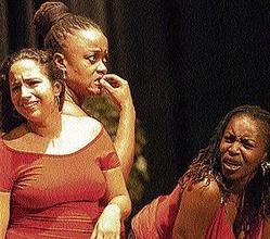 Deanne Allgrove (left), Nadean Rawlins (centre) and Makeda Solomon in 'Vagina Monologues', held at the Philip Sherlock Centre for the Creative Arts, UWI, Mona campus, on Tuesday, March 7, 2006. - Winston Sill/Freelance Photographer
