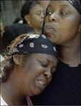 Dawn Morris (left), mother of 18-year-old Shaineta Smith who was murdered yesterday in Norman Gardens, is comforted by friend Janet Chambers.