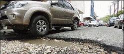 Left: There are potholes on Trinidad Terrace in New Kingston that test the limits of even the largest SUVs. Right: Crater alert! These deep potholes on Michael Manley Boulevard in Kingston brought drivers using the roadway much frustration yesterday.