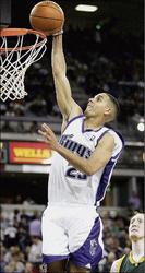 Sacramento Kings guard Kevin Martin dunks against the Seattle Supersonics in Sacramento on Tuesday night. The Kings won 104-98. - Reuters