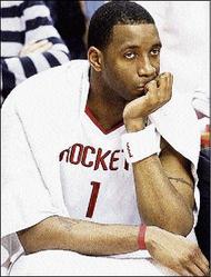 Houston Rockets' Tracy McGrady sits on the bench during the fourth quarter of the game against Boston Celtics on Tuesday night. The Rockets 22-game winning streak ended as the Celtics beat them 94-74. - AP