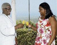 Boris Gardner and Mary Isaacs hang out at the Mother's Day Wellness Tea Party, Mona Visitors' Lodge, UWI, yesterday. - Nathaniel Stewart/Freelance Photographer