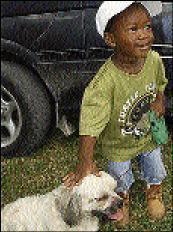 It's really true, puppies and children are cute and so is little Kyle McFarlane as he makes the most of his opportunity to pet this shih-tzu poodle, called Tiny, at the Montego Bay Premier Dog Show, last Saturday.