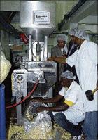 Robert Miller (left), head of the Caricom Single Market and Economy, and Edward Chin-Mook, president of the Small Business Association of Jamaica, watch as lab technicians at the Scientific Research Council at Hope Gardens, St Andrew, conduct a demonstration during open-house-activities in August 2007. - file