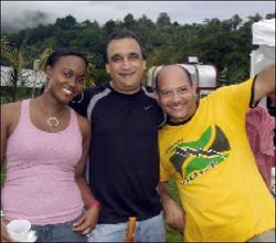 Joyett Johnson (left), Philip Crimarco and 'Mr Bolt' Abe Baracatt enjoy the party vibe.