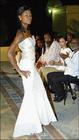 LEFT: Crystal Patterson shows off her designer duds - dress by Mutamba, footwear by Bridget Sandals.
