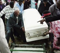 Lillimae Tomlinson's coffin is lowered into her grave. - Photo by George Henry