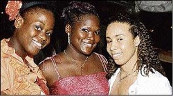 From left: Krishana Bent, Renee Williams and Denise Howell were out enjoying the reception aboard the Chilean vessel 'Esmeraldo' at Pier Two, Kingston Wharves, on Saturday. - Winston Sill/Freelance Photographer