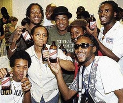 Tito Jackson hangs out with members of the Diageo Learning for Life class during his visit to the Edna Manley School of Arts on Wednesday evening. Of course, the popular brew was the drink of choice. - Contributed photos