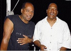 Ace Jackson family photographer, Louis Myrie (left), and Raymond Calhoun, drummer, hang out in the cool atmosphere of Strawberry Hill, St Andrew. Both men have Jamaican mothers from St Ann and Kingston, respectively. They were delighted to be in hills that reminded them of sections of Los Angeles, California.