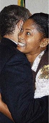 Showing their brilliant white smiles are Danielle Morrison (left) and Chelsea Singh at the dinner function to honour centenarian Atphel Horatio James, held at the Police Officers' Club, Hope Road, St Andrew, on Tuesday. - Winston Sill/Freelance Photographer