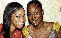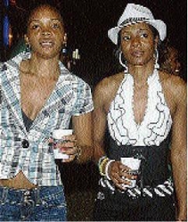 Annmarie Green (left) and Tracey-Ann Sullivan walking tall into Reggae Sumfest on Saturday night. - Photos by Janet Silvera