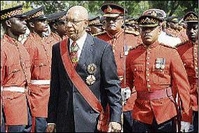 Governor General Sir Patrick Allen gives his first Independence Day inpection of the Guard of Honour during celebrations at King's House yesterday.