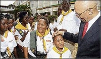 Left: Attending the Independence Day ceremony at King's House yesterday had its advantages. Just ask young Annadene Blake, who ran to hug a willing Prime Minister Bruce Golding during the festivities.