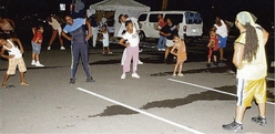 Personal trainer Tafari Gordon gets people warmed up for an aerobic class at 'Keep fit at Michi Super Centre' last Tuesday. - photos by Winston Sill/Freelance Photographer