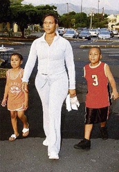 Oavah Daye-Gordon and her children Steve-Ann and Tyrique do their laps.