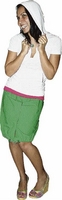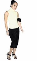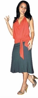 1. This simple yet sexy skirt features a short front and a longer back. It is paired with a hot wrap top that is ideal for an evening out. 2. Jazz up your office wardrobe with this brown, striped, layered skirt with a simple brown top and a pair of peep-toe pumps. 3.Get funky in this grass-green skirt jazzed up with a pink tank top and hoodie, complemented by a multicoloured wedge. - photos by Colin Hamilton/Freelance Photographer