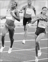 Anneisha Mclaughlin (left), Allyson Felix (right) and Tameka Williams. - photo by Oliver Wright