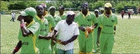 Hanover Dolphins players make their way off the field after beating Kingston and St Andrew in the Red Stripe Twenty20 Cricket Championship quarter-final at Alpart Sports Club, Nain, St Elizabeth. - photo by George Henry