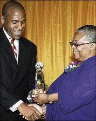Marlene Street-Forrest, general manager of the Jamaica Stock Exchange, presents the JSE Best Practice Award for Corporate Disclosure/Investor Relations to Chris Williams, managing director of NCB Capital Markets Limited, at the awards ceremony held at the Jamaica Pegasus Hotel, New Kingston, on December 8, 2009. The category got weak participation with only 14 of 43 eligible companies returning questionnaires. - photos by Colin Hamilton/freelance photographer