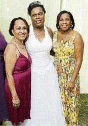 Elaine Paul (left) and Lavern Parchment (right) strike a pose with Rose Marie Rumble after the wedding reception.