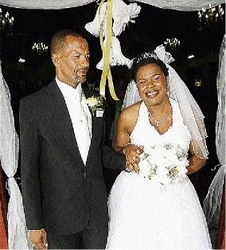 Newly-weds Rose Marie and Dwight Rumble step out of the Meadowbrook United Church after tying the knot on Saturday, December 19.