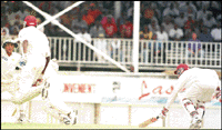 ST JOHN'S, CANA: INSPIRATIONAL CAPTAIN Jimmy Adams, steered the West Indies to a nerve-wracking one-wicket victory over Pakistan on the final day of the third Cable & Wireless Test at the Antigua Recreation Ground yesterday to win the three-match...