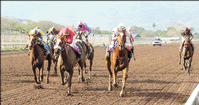 LEADING jockey Wesley "Callaloo" Henry was on fire at Caymanas Park yesterday, reeling off a fabulous four-timer on the 10-race programme to widen his lead over closest rival Ramon Parish in the jockeys' standings. His winners were PURPLE HEART at 9-5...