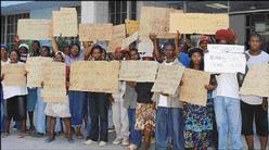 "It is all wickedness, look how many hungry people inna Jamaica and dem a dash weh good food," said an elderly Viola Campbell, as she angrily waved her placard, which read, "Too old to run from police".