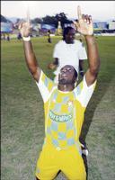Waterhouse's Kevin Lamey celebrates by signalling the scoreline after scoring against runners-up Harbour View in their final Wray and Nephew National Premier League match of the season, at Drewsland Mini Stadium on Sunday. The game ended 1-1. - RICARDO MAKYN/STAFF PHOTOGRAPHER