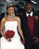 Left: Garth Walker and his new bride Kimisha exit the church. Right: In a departure from the norm, the bride tossed individual long-stemmed red roses to the single women who attended. Each bore a wish that they too would find their 'prince'. - CONTRIBUTED PHOTOS