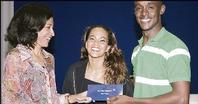 Diane Corrie, commercial manager, British Airways presents the prize of BA tickets for two to London to 'Dance BA' winners Marlon Simms and Shelly-Ann Maxwell. - CONTRIBUTED