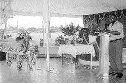 Brightly coloured wreaths and a blue glass-top coffin, seemingly could not cheer up loved ones who were paying their last respects to Samuel John Brown at the Harvest Temple Apostolic Church in Portsmouth, St. Catherine, on Sunday.