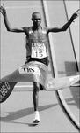 APKenya's Luke Kibet crosses the finish line to win the men's marathon at the World Athletics Championships in Osaka, Japan, on Saturday (last night Caribbean time).