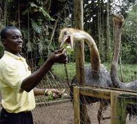 Tour guide Donovan Clarke feeds the ostriches to demonstrate their friendly nature.
