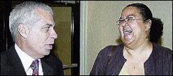 Executive director of JFJ, Dr Carolyn Gomes (right), welcomes Madai Hernandez (left), deputy head of mission in the Venezuelan Embassy, and her husband, Marcelo.