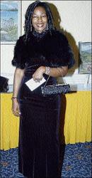 Left: George Cumming holds the Jean Pearson sculpture his wife successfully bid on at the Jamaicans for Justice Gala Dinner, Art and Collectibles Auction, held at the Knutsford Court Hotel, New Kingston, on Friday, June 20. Right:Attorney Andrea Moore always knows just what gets it done, whether in her work or play. This ebony number she wore at the JFJ Gala Dinner, Art and Collectibles Auction continues the trend. Case closed!