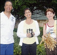 Spectators (from left) Stuart and Nicola Delapenha and Jennifer Lopez were out at 6 a.m. on Sunday for the much anticipated, two-man, one-mile race, which was won by Frederick Moe. - Photos by Janet Silvera