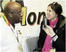 Jamaica Reggae Industry Association (JARIA) Vice-Chairman, Howard McIntosh, is interviewed by Danish journalist Rebecca in the JARIA booth at the World Music Expo (WOMEX) in Copenhagen, Denmark. The JARIA delegation comprised Howard McIntosh, Charles Campbell, Jade Lee, Joan Elizabeth Webley, Jerome Hamilton and Carlette DeLeon. The group sought to market Jamaican music to buyers and bookers across the world during the five-day event.